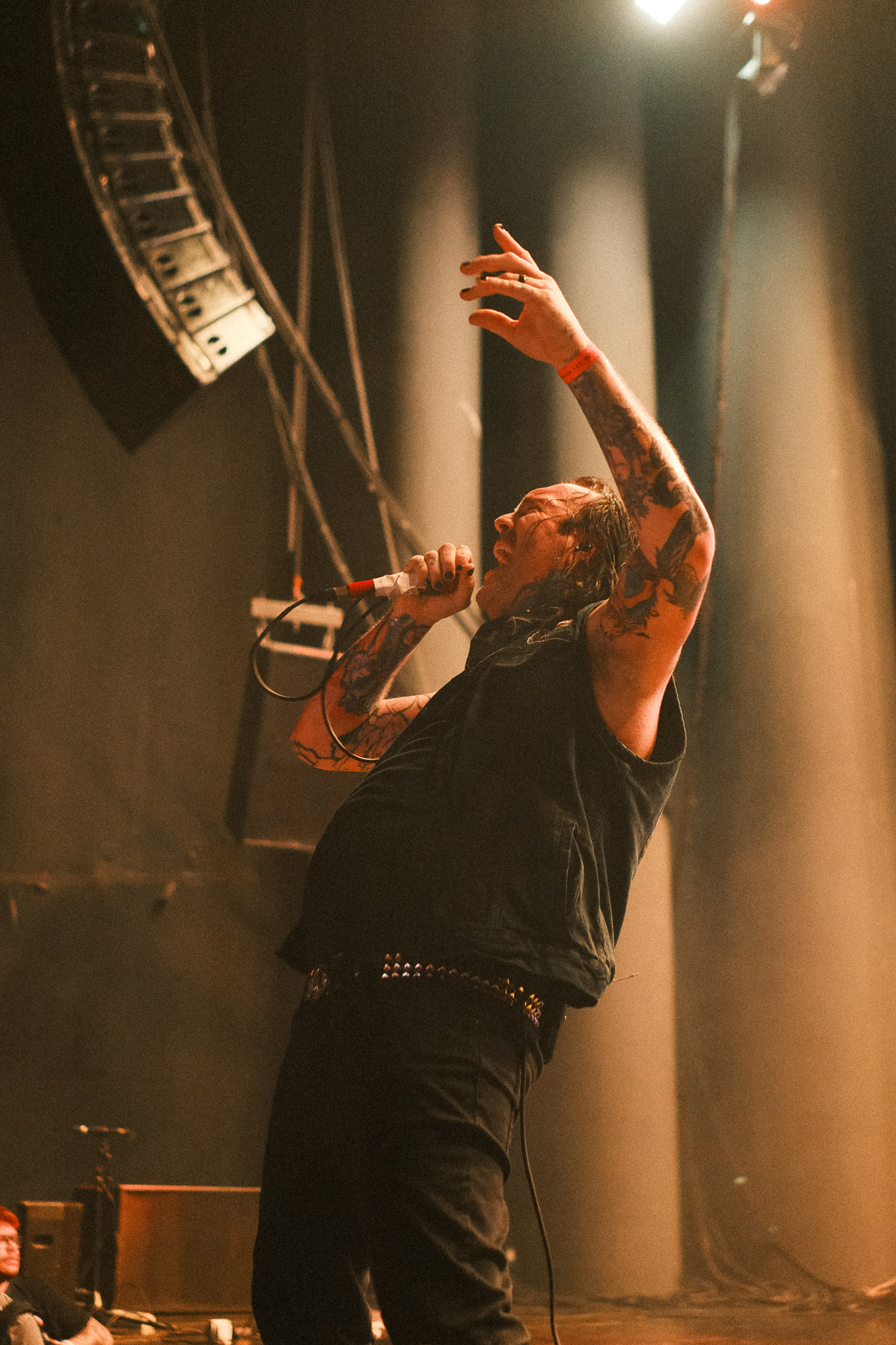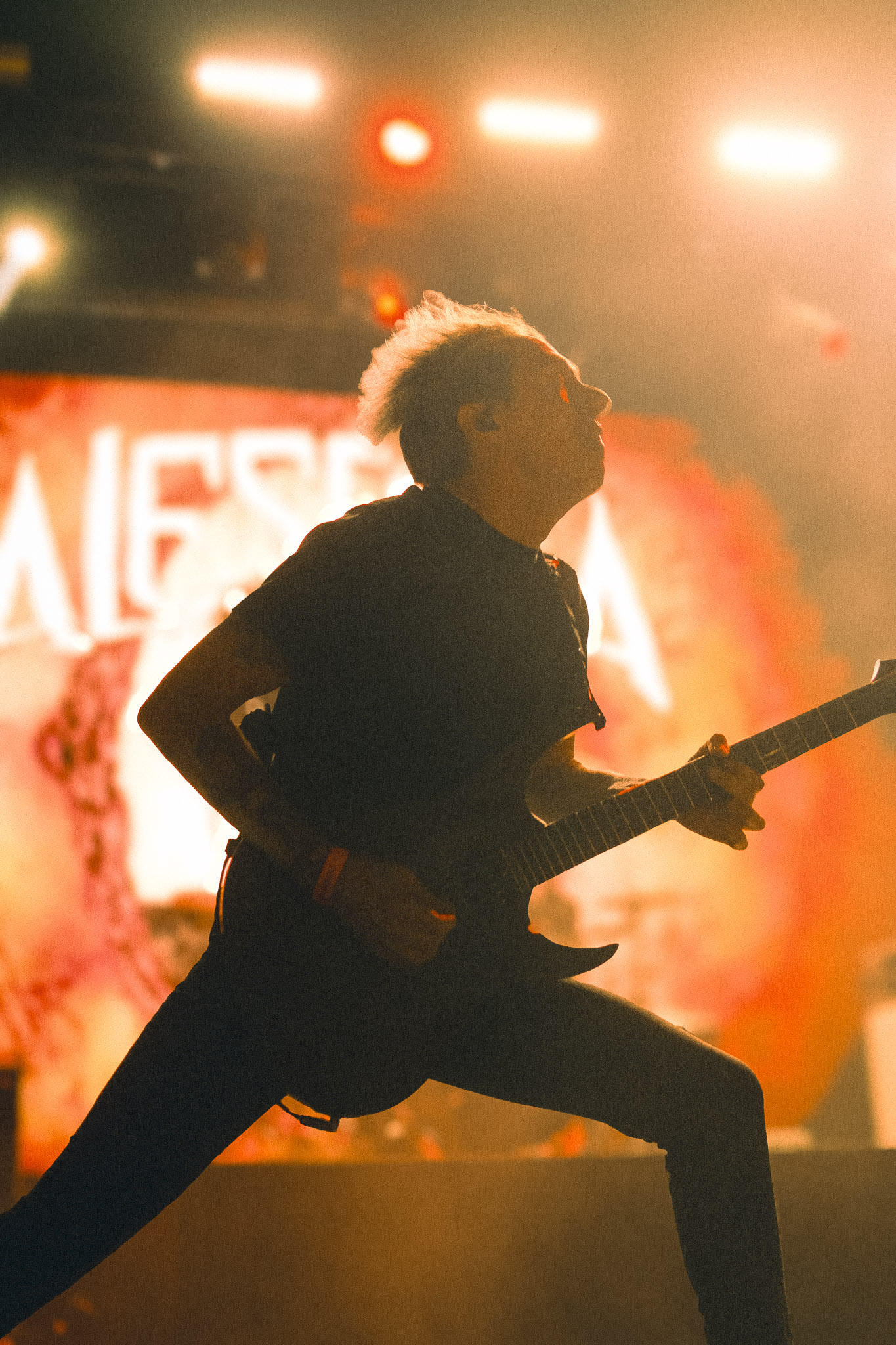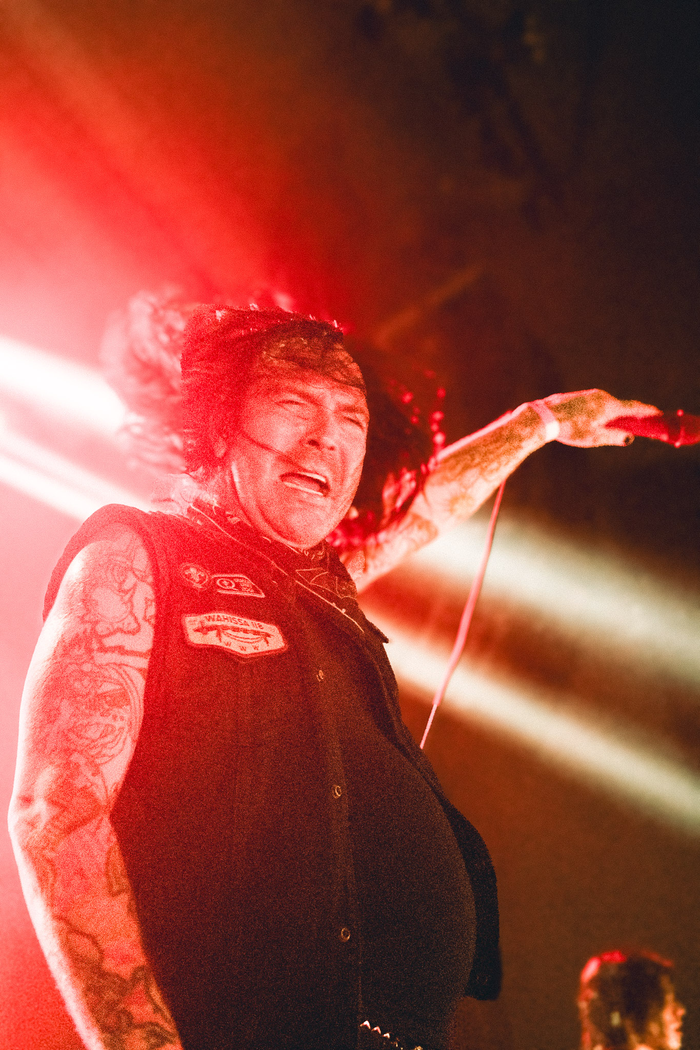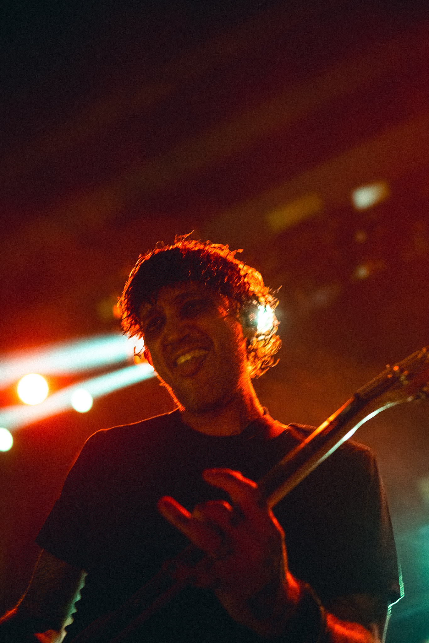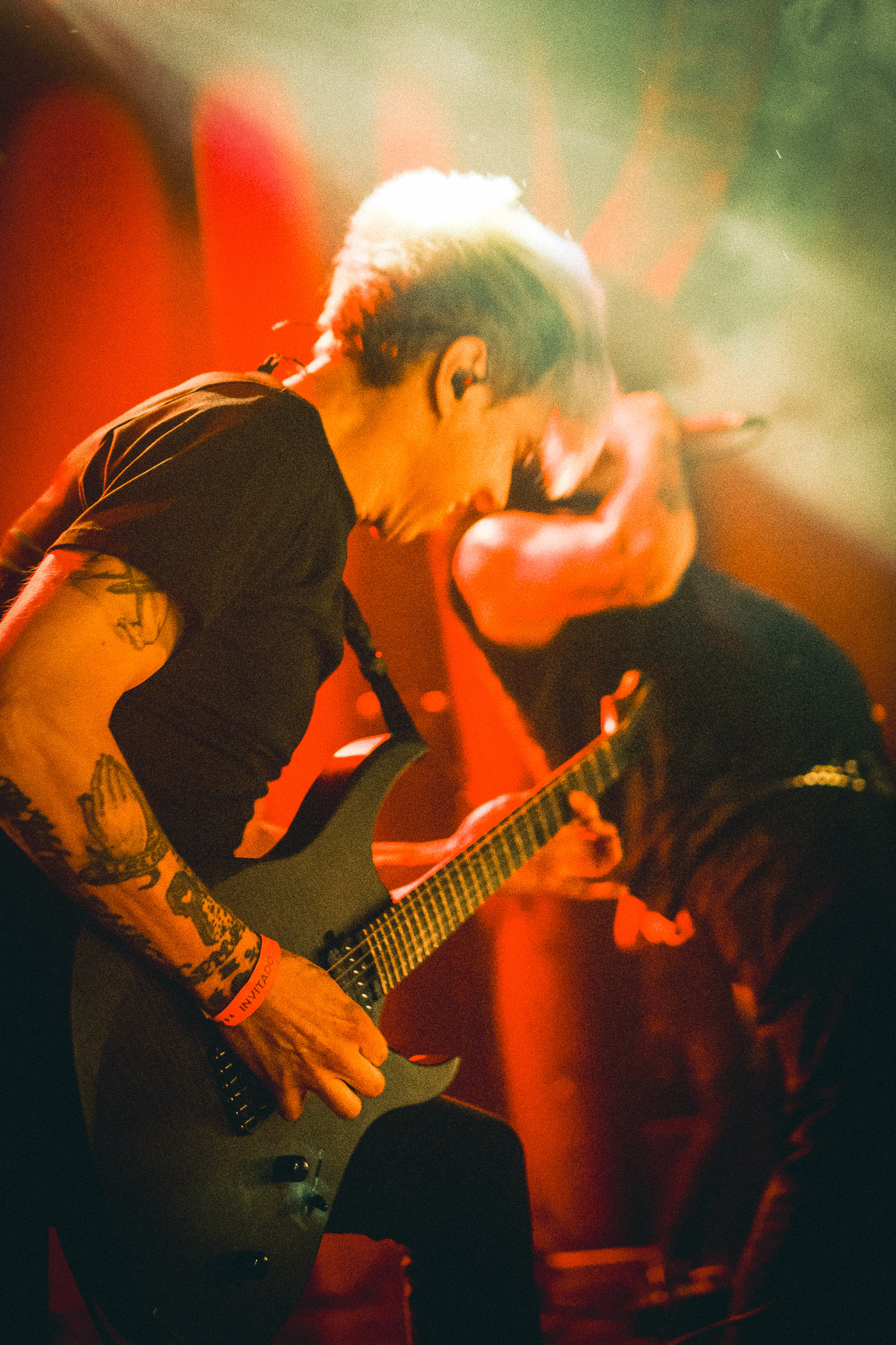 Pasadas las 9:00 PM, el silencio repentino de la música de ambiente dio paso a la locura. se cortó de golpe y las luces del teatro se apagaron, dando paso a la entrada de los músicos bajo un estruendo ensordecedor. No hubo preámbulos: los primeros acordes de "Curse of the Virgin Canvas" bastaron para fracturar la calma. El resultado fue inmediato, ya que se armaron dos moshpits simultáneos, uno a cada lado del recinto, y una mezcla de empujones, gritos de alegría y lágrimas contenidas. La intensidad fue tal que, en cuestión de minutos, el aire en el sector frontal del Coliseo se volvió denso y caluroso, un elemento que abrazamos como parte integral de la experiencia física del concierto.