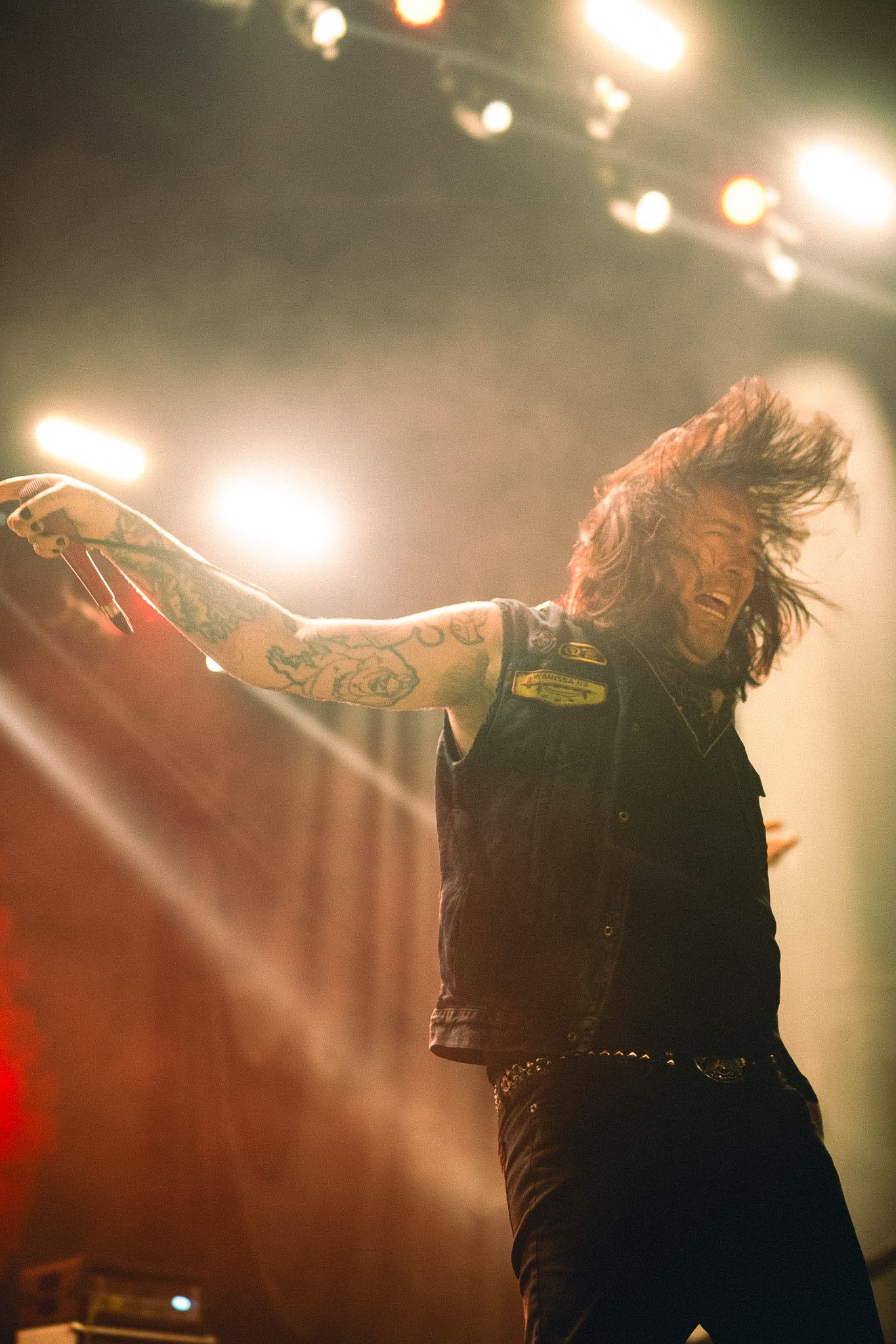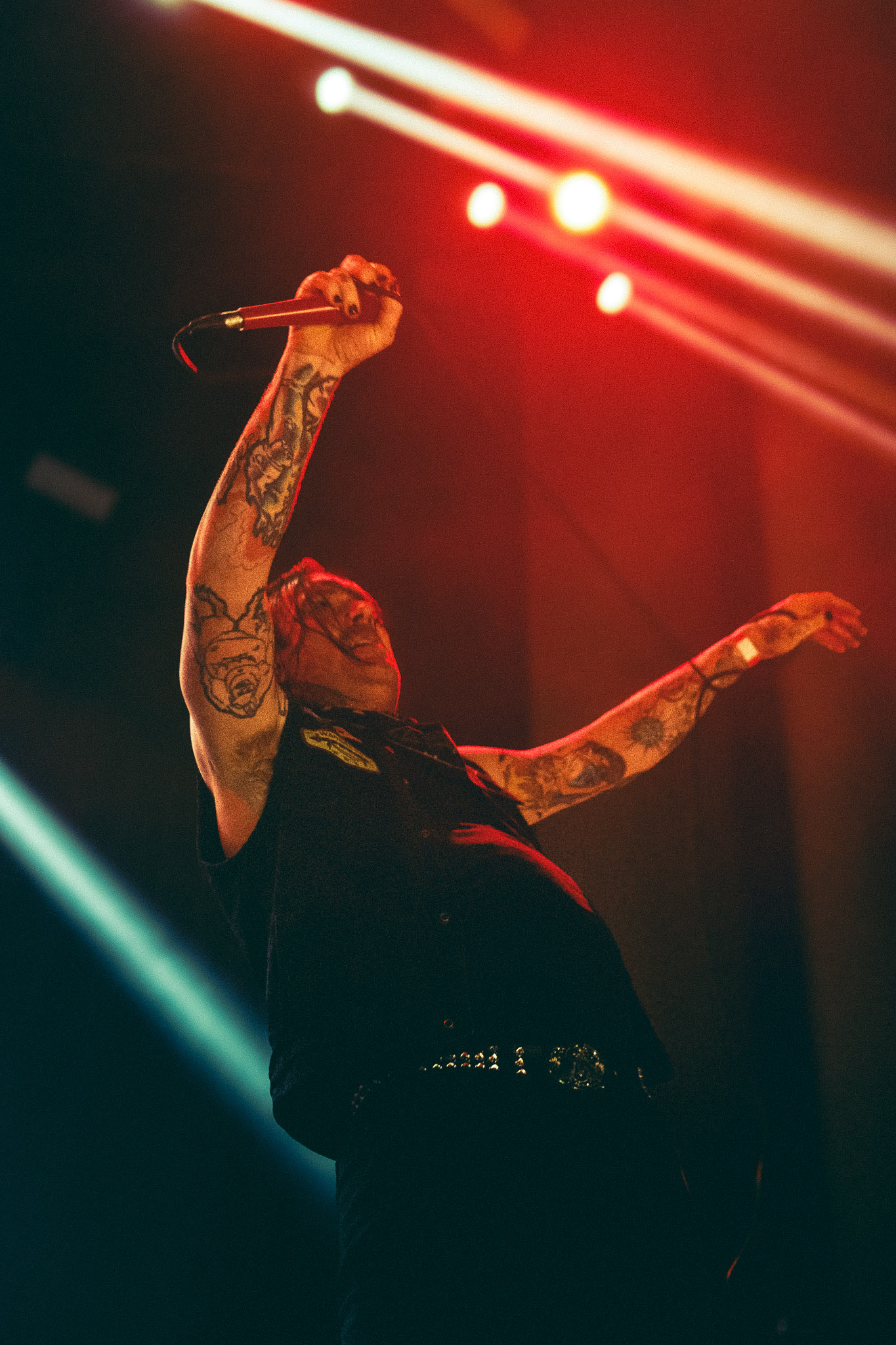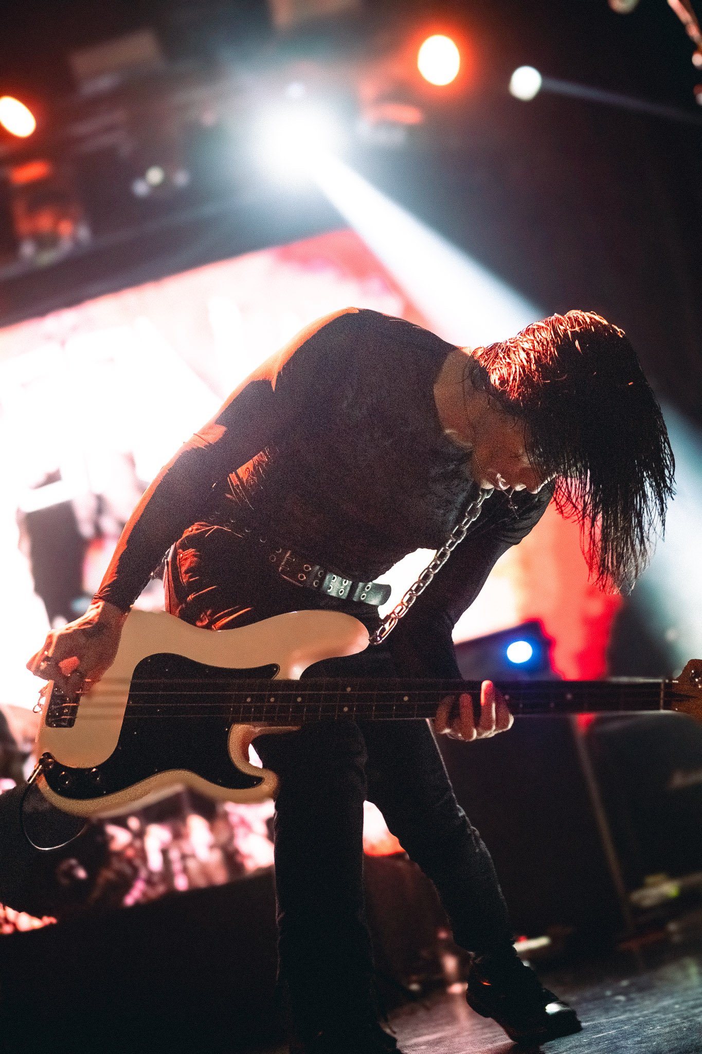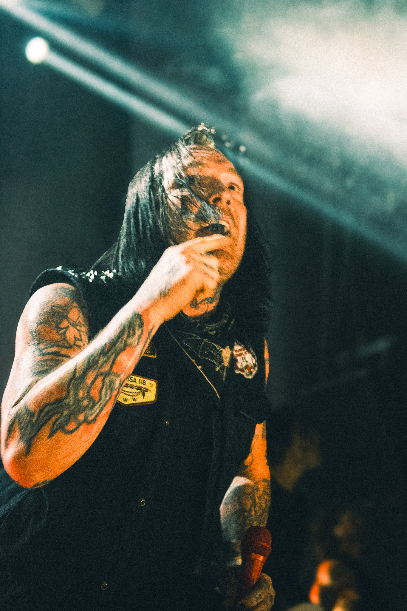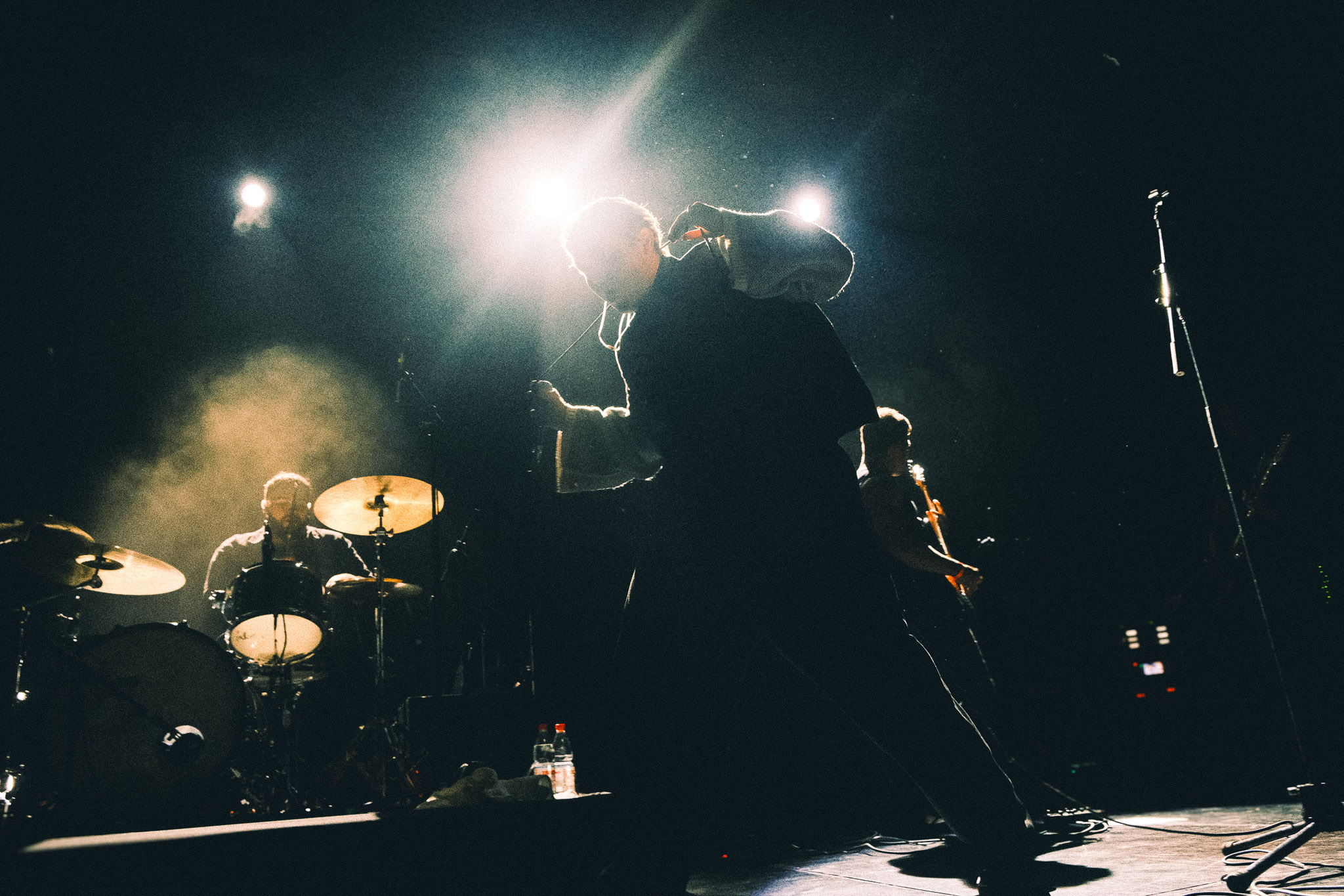 Pasadas las 9:00 PM, el silencio repentino de la música de ambiente dio paso a la locura. se cortó de golpe y las luces del teatro se apagaron, dando paso a la entrada de los músicos bajo un estruendo ensordecedor. No hubo preámbulos: los primeros acordes de "Curse of the Virgin Canvas" bastaron para fracturar la calma. El resultado fue inmediato, ya que se armaron dos moshpits simultáneos, uno a cada lado del recinto, y una mezcla de empujones, gritos de alegría y lágrimas contenidas. La intensidad fue tal que, en cuestión de minutos, el aire en el sector frontal del Coliseo se volvió denso y caluroso, un elemento que abrazamos como parte integral de la experiencia física del concierto.