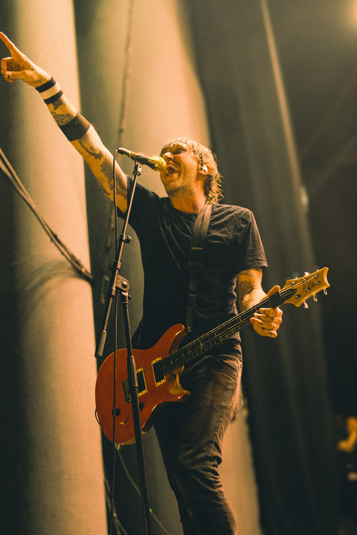 Alesana optó por hablar poco y tocar mucho. No hacía falta más. La banda se dedicó a repasar The Emptiness casi de corrido, manteniendo el loop emocional constante entre la agresividad de los gritos y la melancolía de sus letras. Fue interesante observar cómo la banda manejó la dinámica de sus tres voces, logrando que los matices entre los gritos más agresivos y las melodías limpias se escucharan con nitidez a pesar del caos que se vivía en la barricada. Cada canción parecía recargar la energía de la gente en lugar de agotarla, repitiendo un ciclo de movimiento constante en el pit y coros masivos que tapaban, por momentos, la propia amplificación del lugar.
