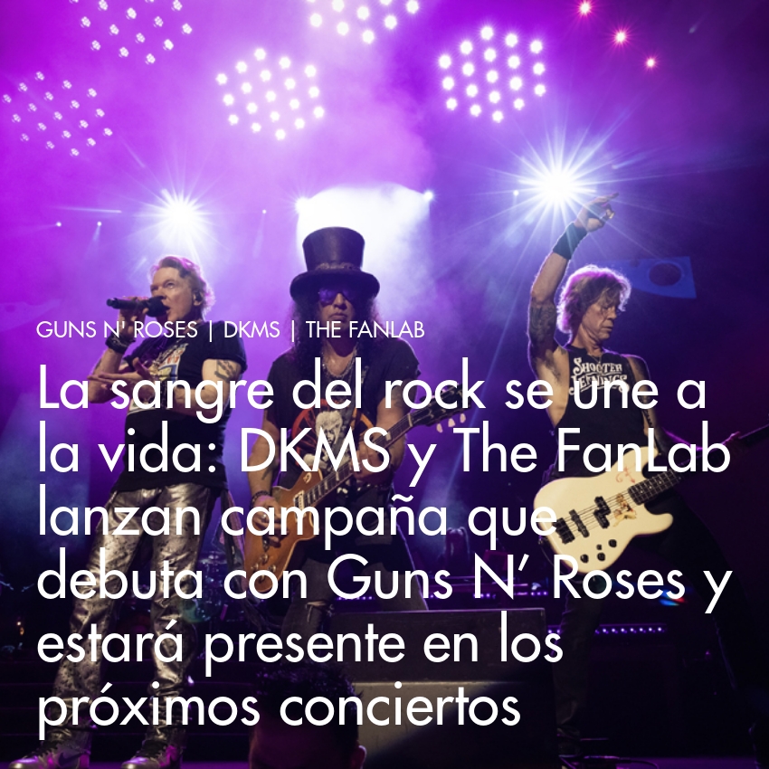 La sangre del rock se une a la vida: DKMS y The FanLab lanzan campaña que debuta con Guns N’ Roses y estará presente en los próximos conciertos.