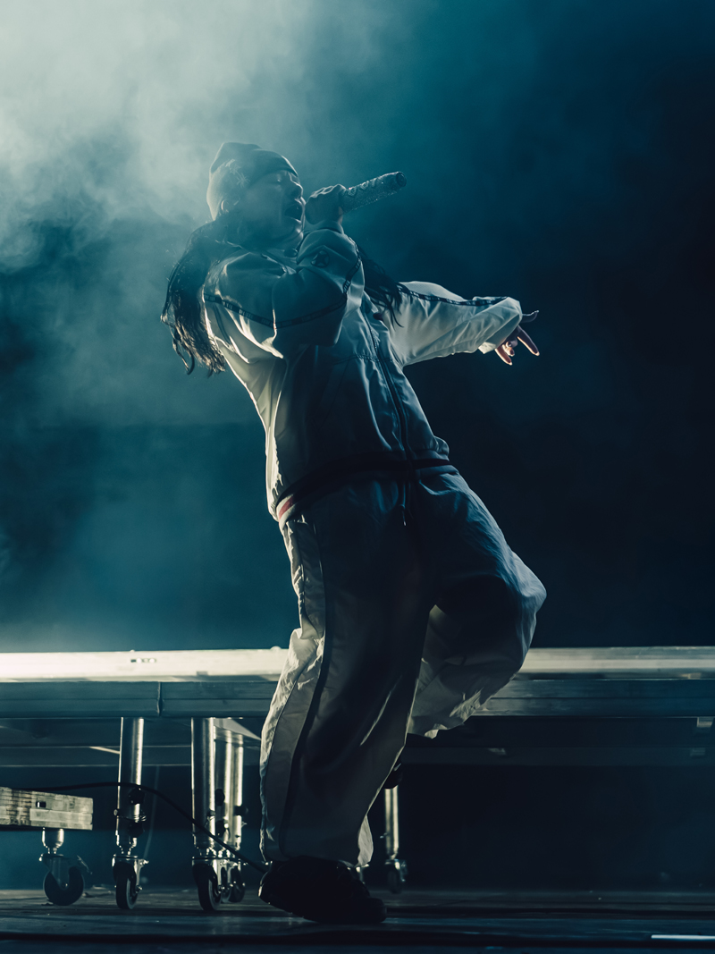 Akriila tuvo una de esas presentaciones que se sienten pensadas como un viaje. Partió en un tono más suave e íntimo interpretando "Carta a mi papá" y "Para siempre", en piano tocado por FaceBrooklyn bajando el ritmo del parque y dejando espacio para la emoción, mostrando una faceta más delicada y cercana. Fue un inicio que capturó la atención desde el silencio, con el público completamente metido en cada frase.