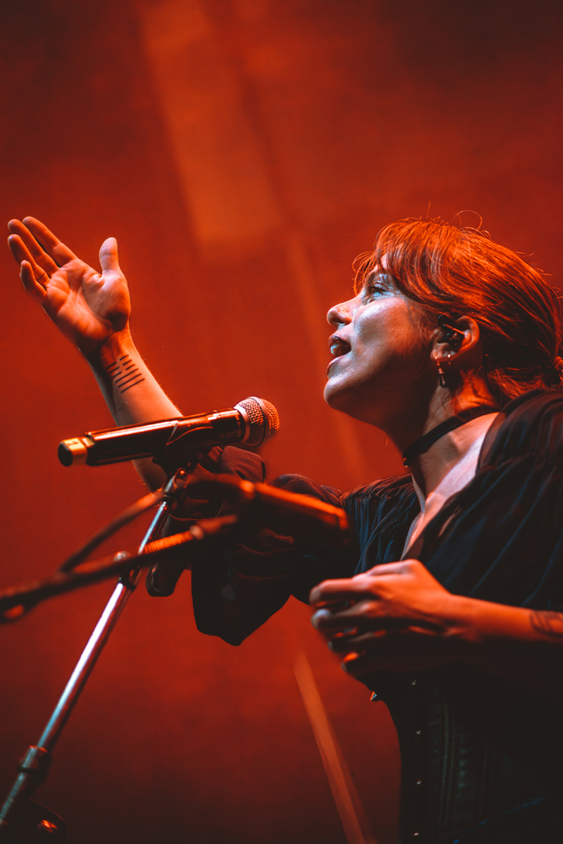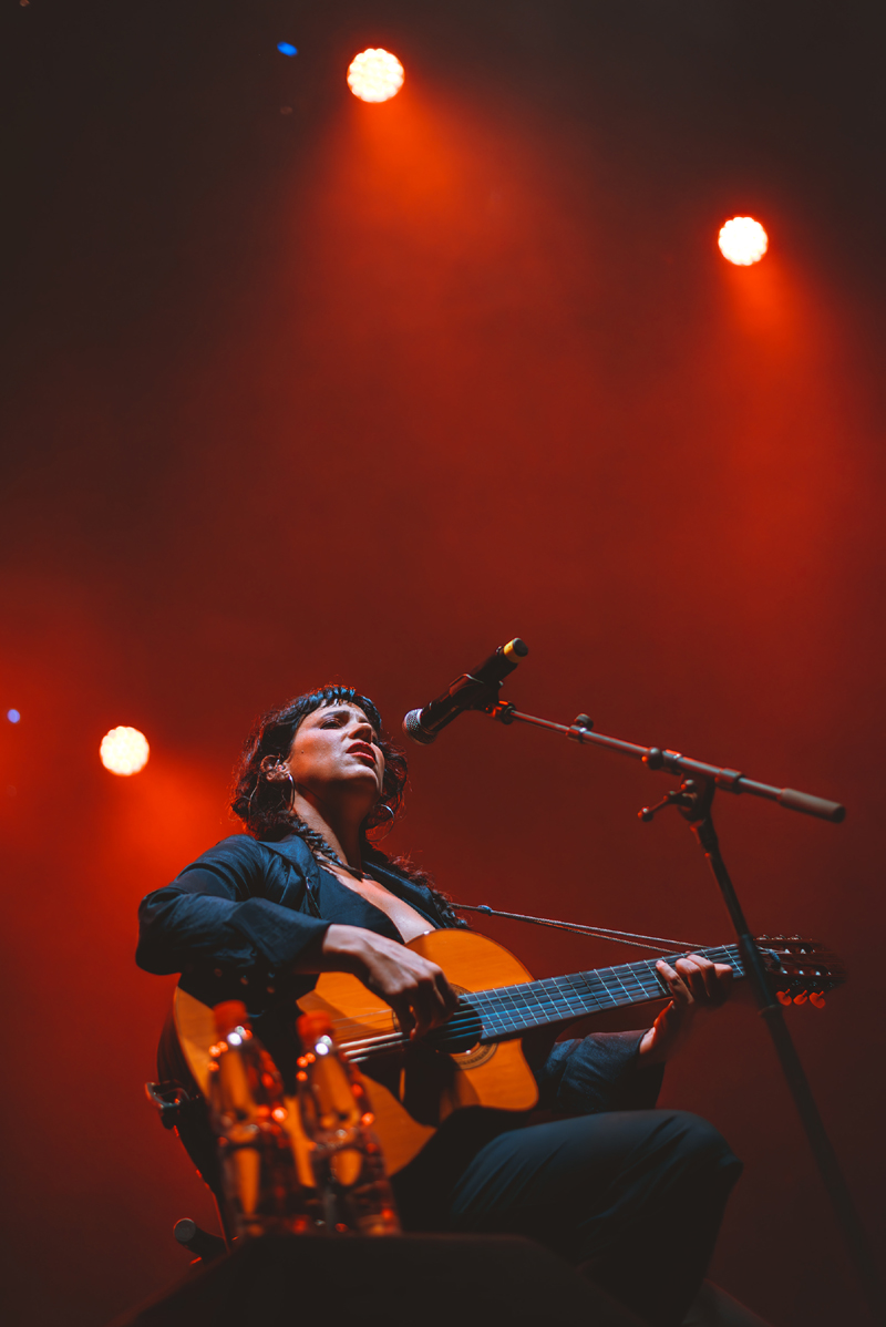Con el teatro completamente lleno y la expectativa en su punto más alto, a las 21:30 horas las luces se apagaron. La ovación fue inmediata y ensordecedora. Perotá Chingó apareció en escena y, fiel a su esencia, decidió comenzar con una interpretación a capela de “Reverdecer”. Un inicio íntimo, casi ceremonial, que silenció al público por segundos antes de transformarse en un coro colectivo. Desde ese momento, la conexión fue total.